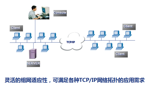 SysView软件由三部分组成:客户端(Client)、服务器(Server)、控制台(Console)。SysView系统支持局域网、跨VLAN及VPN广域网络环境的部署,其构造的管理域是逻辑上的,而不要求物理上是一个内部网络。